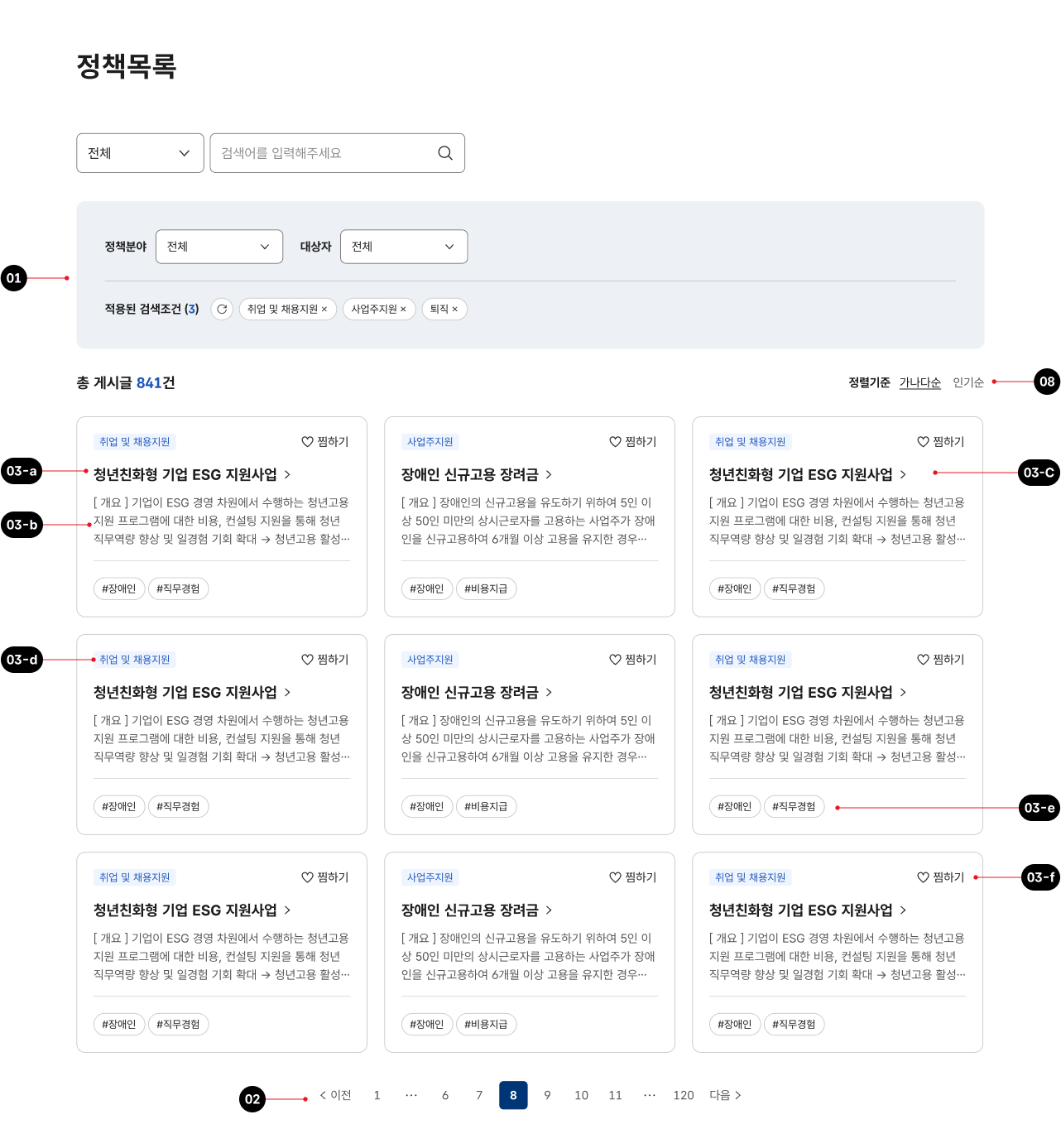 제공 유형, 지원 주기 등 정책의 분류 체계를 배지와 기타 메타 데이터로 제공하여 사용자가 참고할 수 있도록 해야 한다.