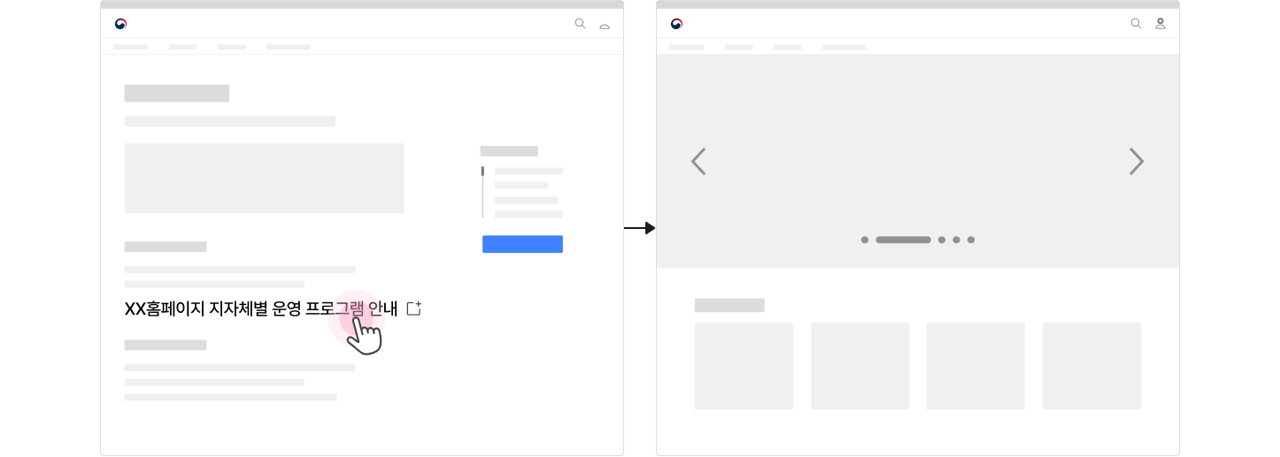 링크의 목적지를 부적절하게 설정하면 사용자는 예측하지 않은 화면으로 이동하여 당황할 수 있고 도착한 페이지/사이트에서 원하는 정보를 찾기 위해 추가적인 정보 탐색을 시도해야 한다. 정책에 대해 보다 구체적인 정보를 확인할 수 있는 링크를 클릭하면 게시판 목록이나 외부 서비스의 메인 화면이아닌 관련 상세 화면으로 연결되어 사용자가 의도한 행동을 수행할 수 있게 설계한다.